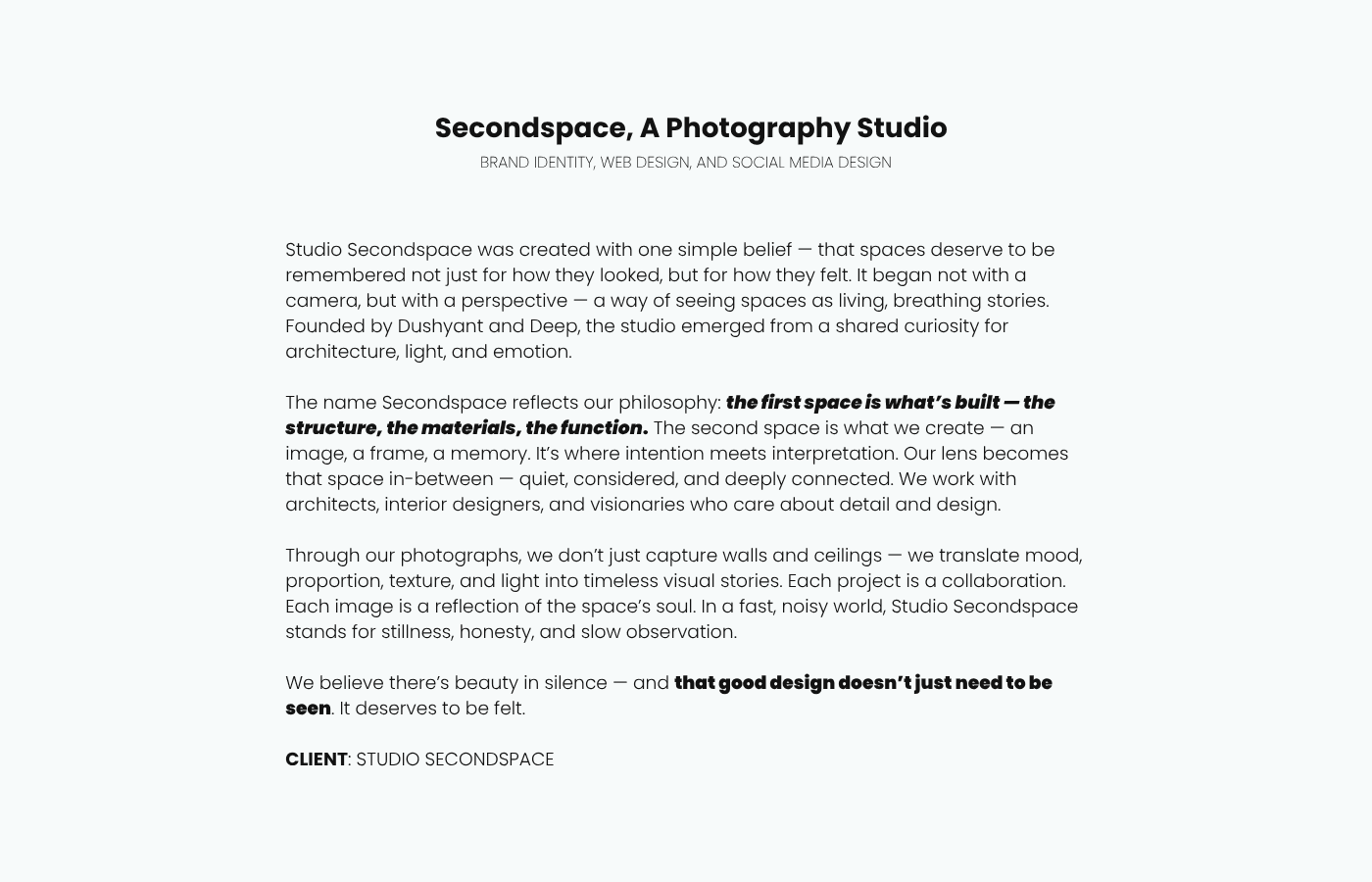 studio, needed a calm, refined identity that let